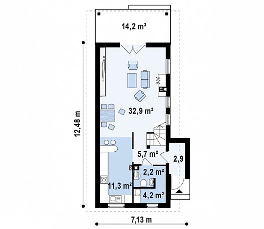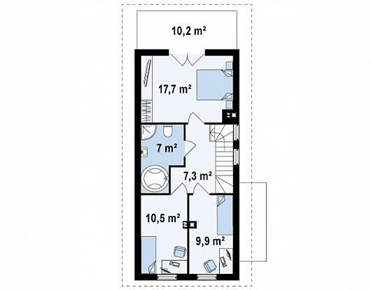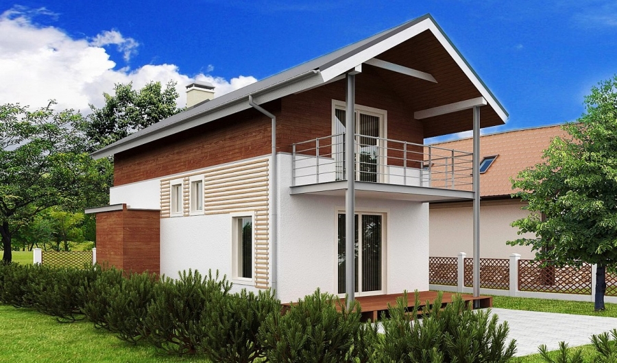 Ориентировочная стоимость проекта "Двухэтажный дом с балконом для узкого участка" или SD-73 при возведении дома на участке клиента составит 1 779 650 рублей.