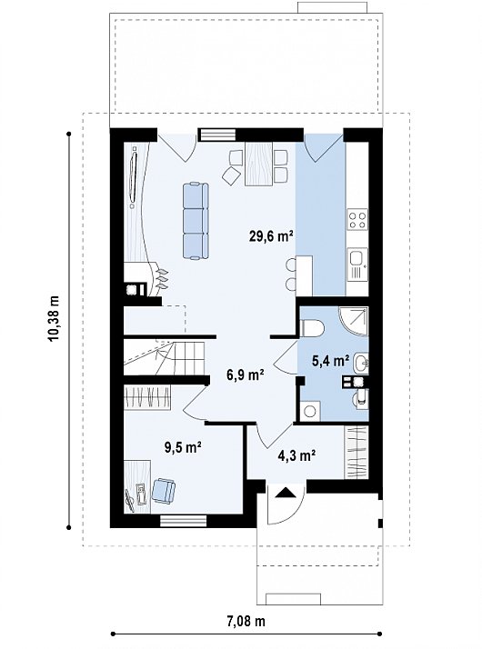 Ориентировочная стоимость проекта "Двухэтажный дом простого типа" или SD-66 при возведении дома на участке клиента составит 1 469 800 рублей.