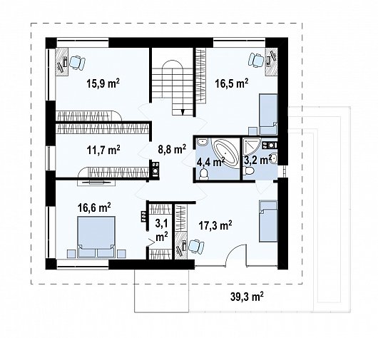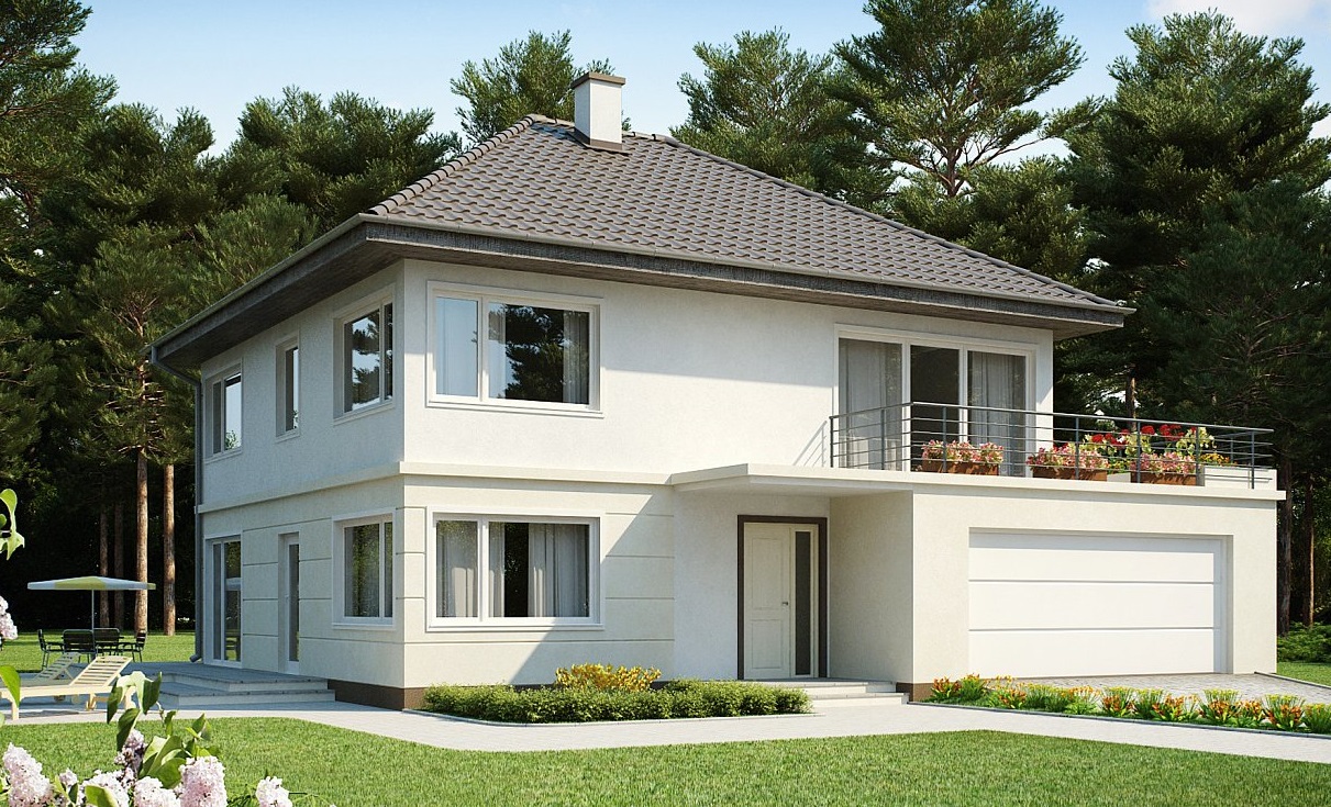 Ориентировочная стоимость проекта "Двухэтажный дом с большим балконом" или SD-53 при возведении дома на участке клиента составит 2 845 000 рублей.