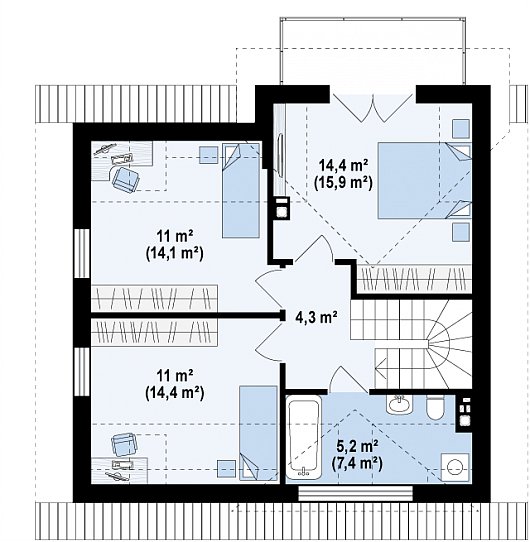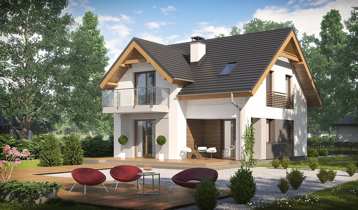 Ориентировочная стоимость проекта "Двухэтажный дом с мансардными окнами" или SD-74 при возведении дома на участке клиента составит 1 598 500 рублей.