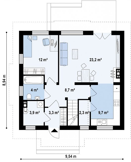 Двухэтажный дом с выходом в сад