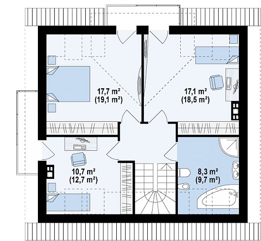 Ориентировочная стоимость проекта "Двухэтажный дом с выходом в сад" или SD-65 при возведении дома на участке клиента составит 1 705 800 рублей.