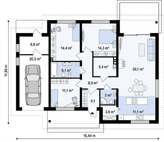 Компактный одноэтажный дом